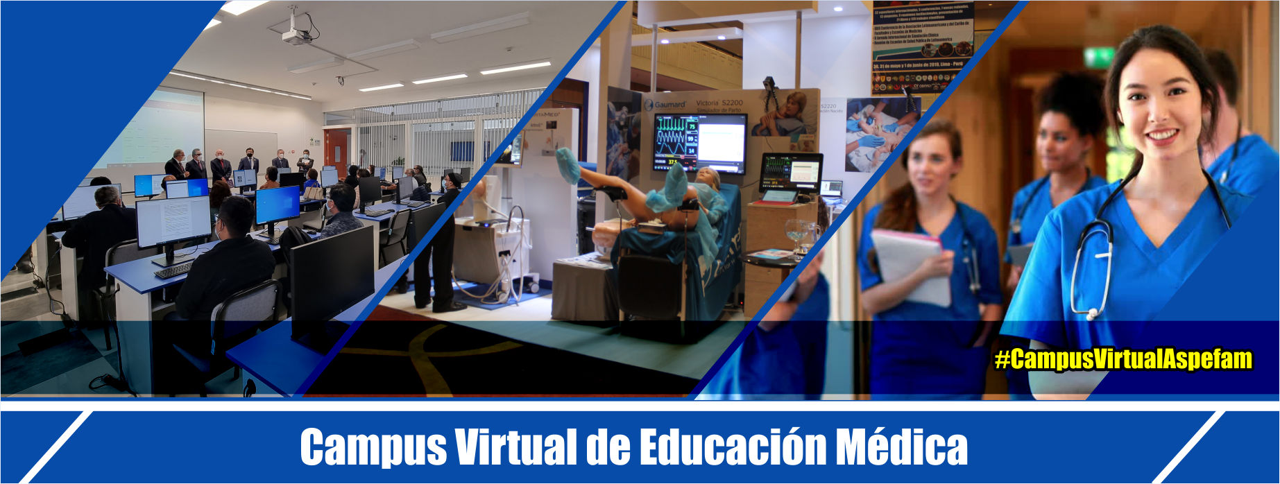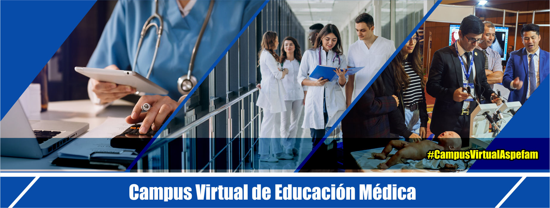 El Campus Virtual de Educación Médica de ASPEFAM es una plataforma diseñada para codyuvar al fortalecimiento de una educación médica de calidad, a través de la implementación de programas, cursos, seminarios, conferencias y otras actividades formativas que se desarrollan en la modalidad virtual. Nuestro propósito es diseñar contenidos educativos actualizados y de la más alta calidad, para lo cual, ASPEFAM congrega a profesionales de reconocido prestigio nacional e internacional que ponen su experticia al servicio de la educación médica.